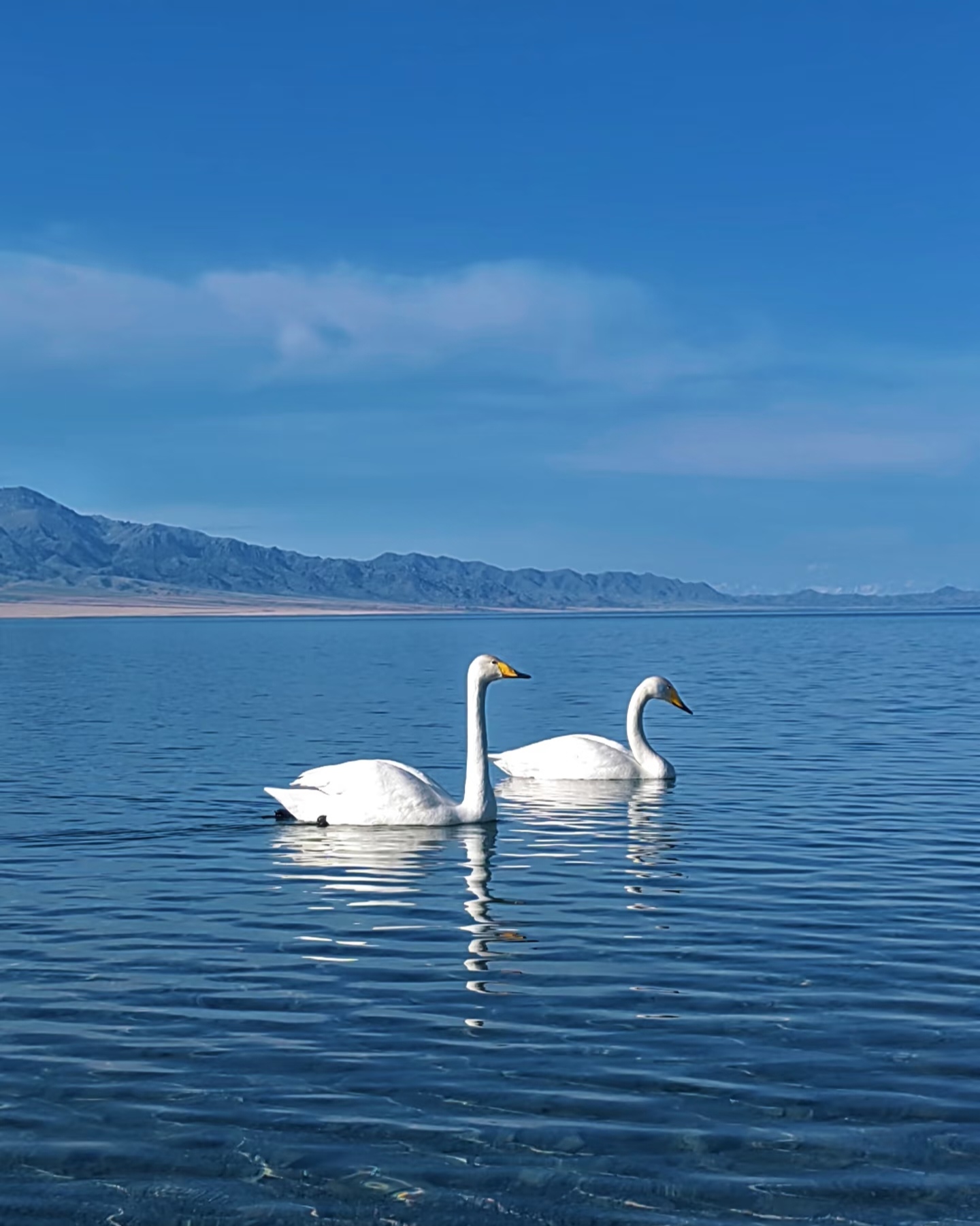 The most astonishing thing was that when we finally reached Songzhuotou, several swans were playing and swimming in the lake. The swans had rich feathers and a plump body, and were extremely beautiful. At this moment, looking at the swans before me and the azure Seryum Lake, one couldn't help but feel: These two are the most perfect match!