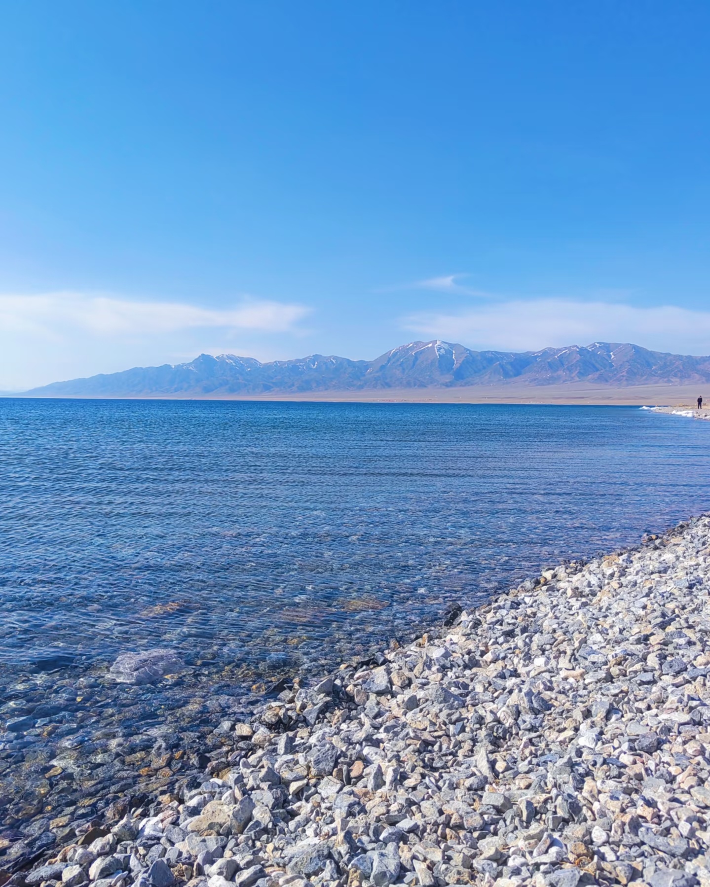 Taking the bus to circle the lake is extremely convenient. When the weather is good, the scenery is absolutely beautiful. The circumference of the Sayram Lake is approximately 90 kilometers. Usually, we enter from the east gate and exit from the south gate. We were extremely lucky; we encountered excellent weather at the first stop, and everyone had a great time.