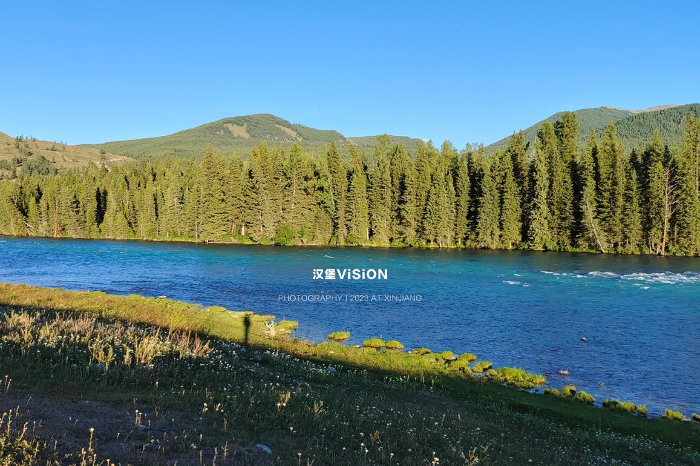 After resting for a night in Kanas Village, the next morning we all took a bus to Kanas Sanjiang. From Moon Bay to Wolong Bay, it's a total of three kilometers. The scenery is excellent. Walking along the Kanas River, with green mountains and lush trees, it feels like "people are swimming in a painting". The lake water in Kanas is sometimes emerald green and sometimes deep blue. From different angles, it presents different colors, and I'm not sure if it's water or jade! Everyone also highly praised this short and pleasant hiking!
