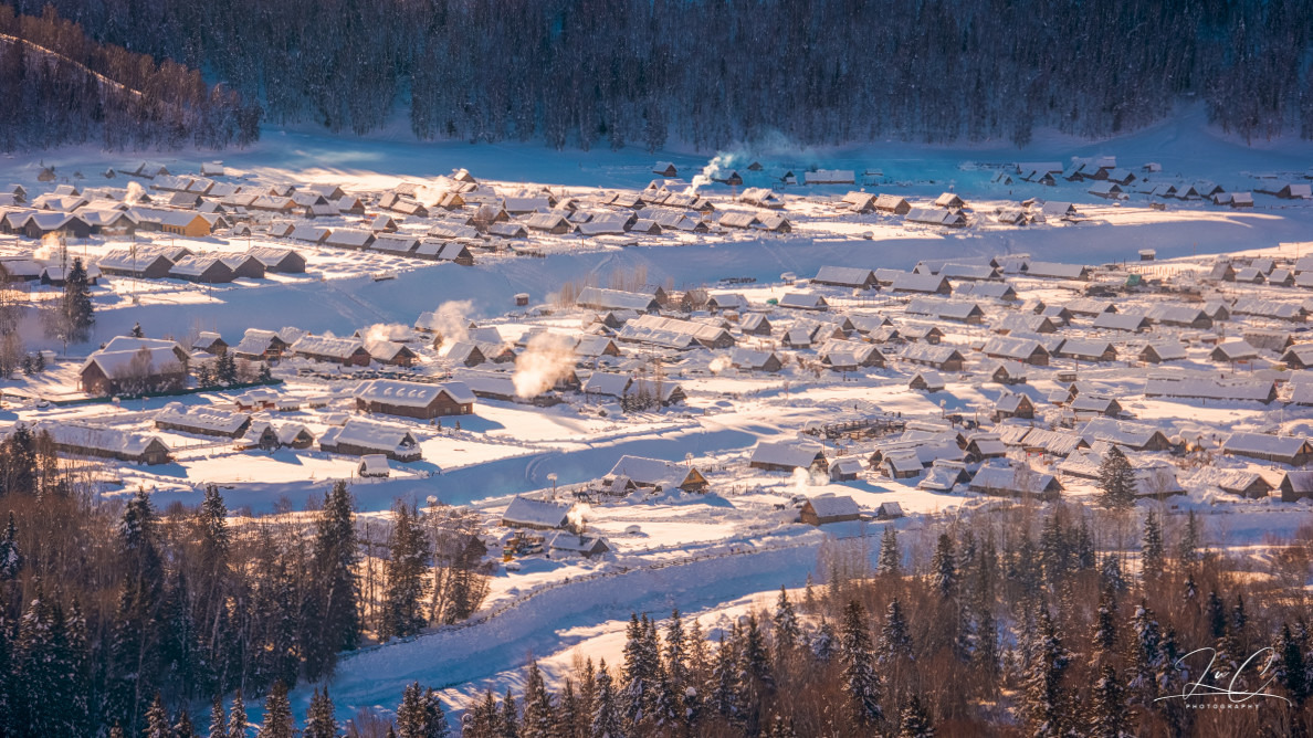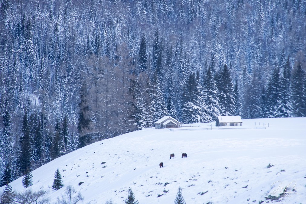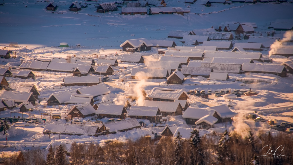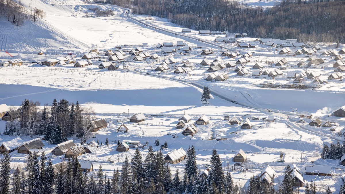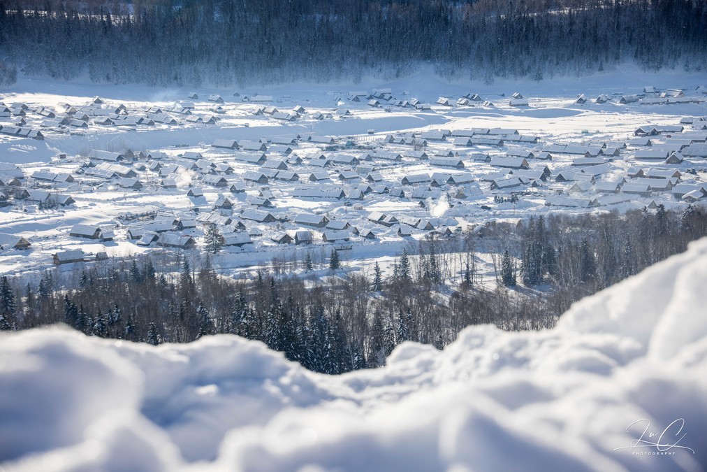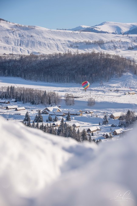 Although Hemei Village was overcrowded during the Spring Festival, when I looked down from the observation deck, I didn't feel that there were many people. I really, really like Hemei when it's snowing. Here, there are the purest scenery yet it doesn't lack the warmth of daily life. This trip was too rushed and I just took a cursory look. In the future, if I have the chance to visit the northern Xinjiang region in winter, I think I will probably choose to directly stay in Hemei for a week. I'll bring snowboards and go skiing on the Jikuping mountain for a day of powder snow. When I'm not at the ski resort, I'll play in the snow in the village or stay by the fireplace of the small wooden house and have a cup of milk tea.