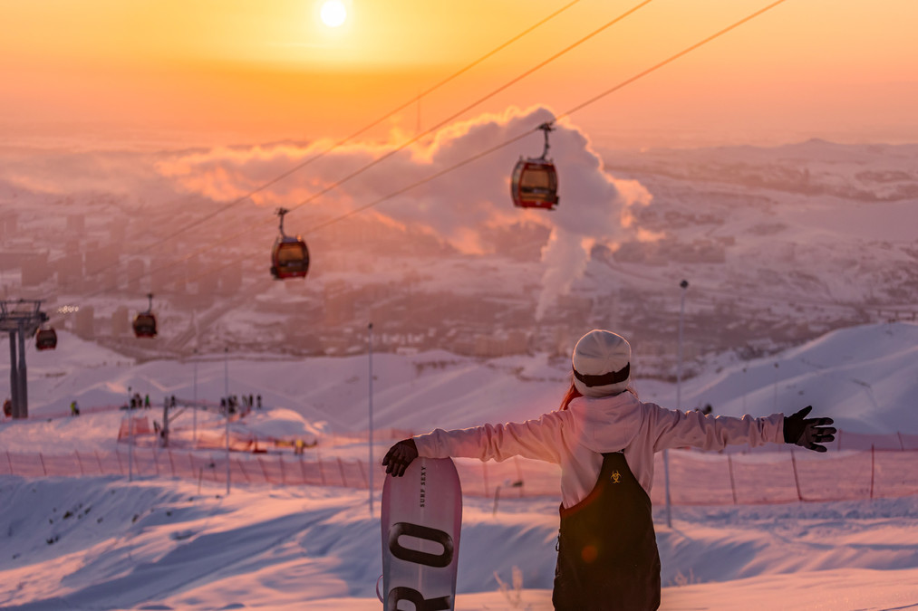 The Altai Mountains within the territory of Altay are located at the 45-degree latitude, which is considered the golden skiing latitude in the world. It is said to be the birthplace of human skiing. The snow season here is very long, and the ski runs can be opened in November and continue until May of the following year. There are 58 ski runs in the ski resort, with an artificial snow area of 1.85 million square meters, a height difference of 460 meters, and 8 cable cars.