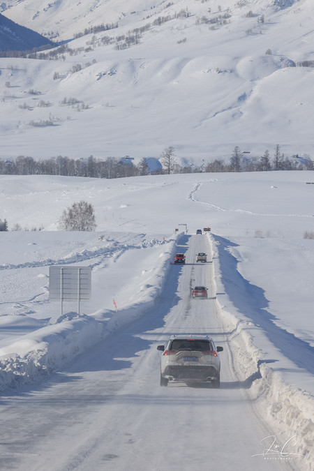 For various reasons, I finally chose to join a tour group. Joining a tour group could satisfy my greed to visit all the scenic spots and was also more convenient. However, due to the heavy snow in mid-January, the Kanas Scenic Area was closed, which made me hesitate for a long time. When I finally made up my mind to sign up, the photography tour group I had my eye on was already full. What a pity! I had no choice but to join an ordinary tourist group. In fact, it was a very unwise decision for a photography enthusiast to join an ordinary tourist group. We just had a cursory look at all the scenic spots, and during the best lighting times, we were either sleeping or on the way. The distances between scenic spots in Xinjiang are very far, and the speed limit is even stricter in winter. It took us a whole day to reach one place, and we just took some pictures with our mobile phones and left... Moreover, since we set off on the second day of the lunar new year, the itinerary was to go to Altay first and then to Yili, which was very unreasonable. Both General Mountain and Hemu in Altay were the most crowded during the Spring Festival, while there were far fewer tourists in Sayram Lake and Yining. If we had gone in the opposite direction, it would have been much better. However, the fellow travelers in the group were all very nice, and I met some friends who I could have fun with.