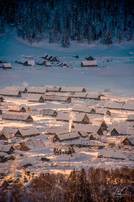 Hemu is a small village located at the foot of the Altai Mountains. It is the settlement of the Tuva people. The entire village is filled with traditional Tuva-style small wooden houses with pointed roofs. In spring, the water flows gently; in summer, the trees are lush; in autumn, the ground is golden; in winter, it is covered in white snow. Each season is as beautiful as a fairy tale and is known as "God's private land".