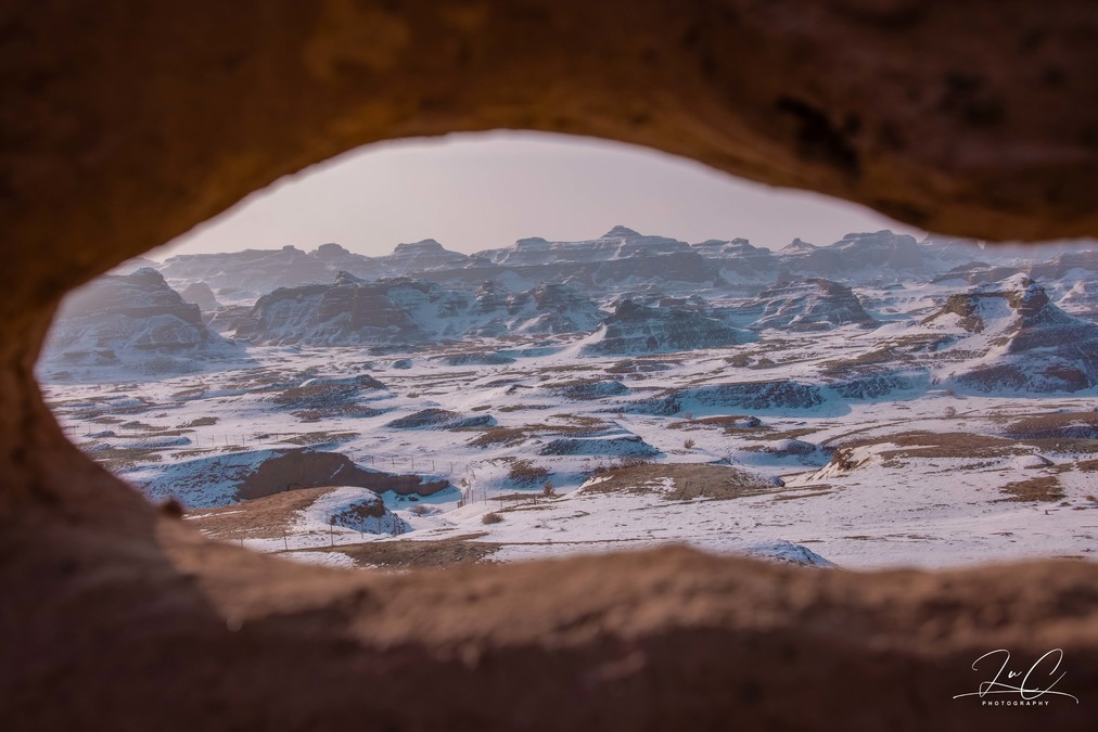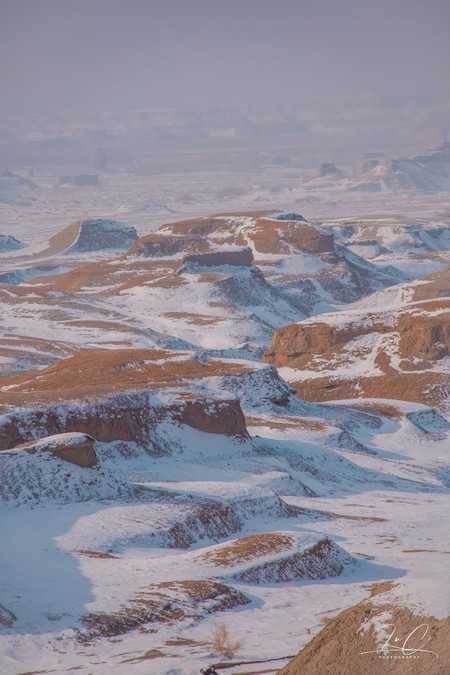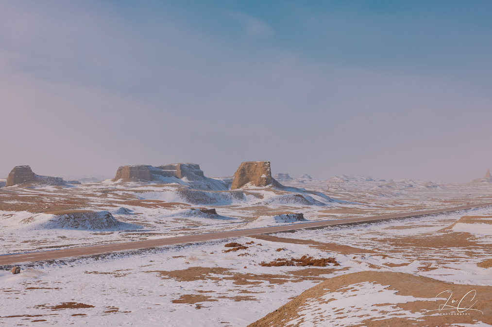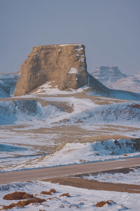 Once you leave the Altay region, the temperature gradually rises and the snow on the ground gradually decreases, giving me a feeling as if we have entered spring. I thought Ulheru was like the vast area of Yadan formations in Altay that was completely covered in snow, but upon arriving there, I realized that the amount of snowfall was much less than I had imagined. The Yadan formations there were in a scattered and partially exposed state, and it felt a bit ugly...