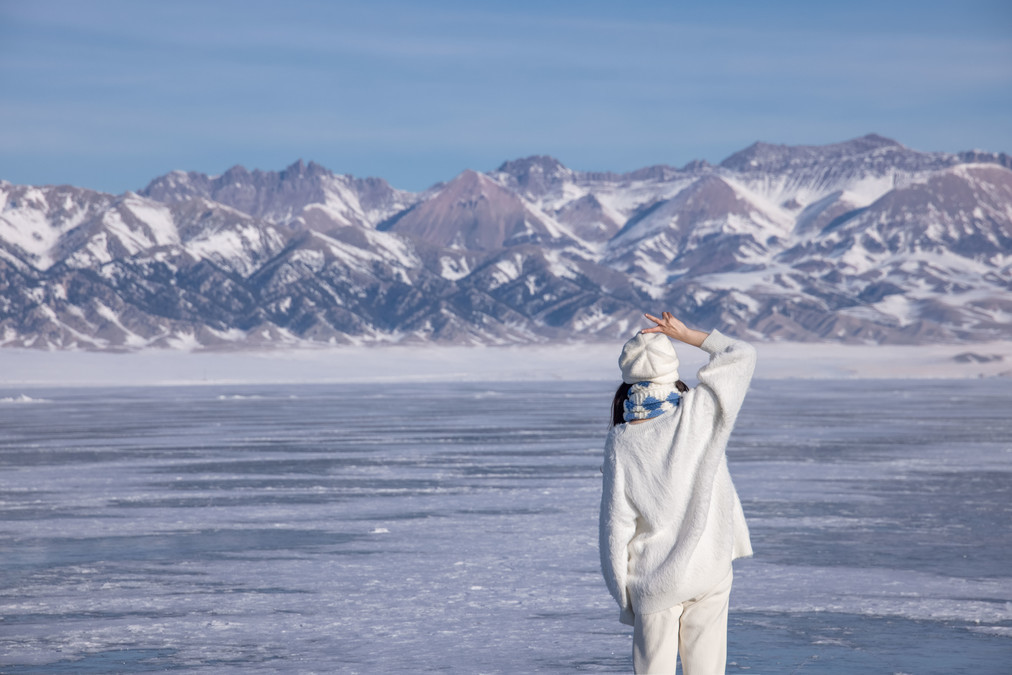 We set off from Dushanzi at around 11 o'clock and arrived at the east gate of Saiwu Lake at 4 p.m. After entering the east gate, there is a small square with some ice sculptures and ice-based entertainment activities, such as slides and ice motorcycles. A small part of the snow surface has been cleared, but it is still in small patches and there are no ice bubbles. The original plan was to watch the sunset on the same day, but in the morning, the weather was clearly sunny, but when we arrived at Saihu, the clouds were increasing and getting thicker, completely blocking the sun and preventing us from seeing the sunset.
