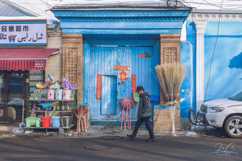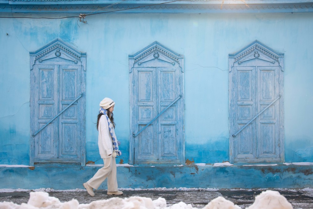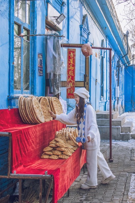 There is a blue color called Sayrim Lake Blue, and there is another blue called Kazanqi Blue. "Kazanqi" in Uyghur language means "people who make cooking pots". Historically, this place was home to many folk artisans who made and sold iron pots and copper pots. Kazanqi is not just one street but several streets combined into a century-old old district. It still retains its original houses and local customs to this day. The residents like to decorate the exterior walls or windows with blue colors, making this district unique and romantic. The streets and alleys here are winding and meandering. It's the most interesting to wander aimlessly through them and accidentally discover little surprises.