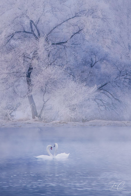 As for the focal length, 70-200mm is just about adequate. Here, the swans are not afraid of people and one can get very close to them. However, to capture the scene of the swans under the foggy icicles from a distance, a longer focal length is definitely better. Also, the aperture of the lens should be large. Foggy icicles usually appear in the morning and sometimes the light is very poor, which requires a lot of testing of the lens and the camera's own sensitivity. My lens had a small aperture and the tripod broke on the way, so I had to shoot handheld and ended up getting all blurry... Just enjoy the atmosphere, eh...