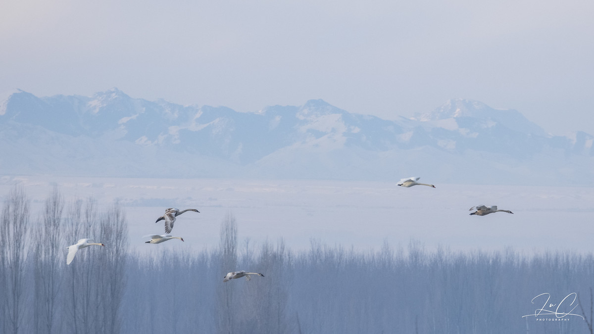 Camera: Canon R5 + 24-240mm/14-35mm. I used the wide-angle lens less and the telephoto lens more. When I was shooting swans in Yining, my lens was not up to the task (the aperture was too small), and the photos came out blurry. It was not worth carrying a 400mm lens for the last half day, so I'll make up for the regret when I have the chance to go there specifically to shoot swans. I also brought a DJI Mavic 2, but in Hemu, I don't know if it was too cold or the battery life was up, but the remote control battery died, so it was like carrying two pieces of scrap iron. I used the tripod to shoot the sunrise twice, and also for self-portraits.