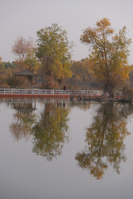 The Hulun Forest in Luntai is located 70 kilometers south of the Luntai County on the South Desert Highway in the Xinjiang Uygur Autonomous Region. It is distributed along the Tarim River Basin and covers an area of over 400,000 mu. It is the largest and most intact natural poplar forest community in the world, and was selected as one of the "Top Ten Most Beautiful Forests in China" by "China National Geography" in 2005. The growth period of the poplars in the forest area is long, forming a unique landscape of "living for three thousand years without dying, dying without collapsing, and collapsing without perishing". It is called "Toklark" (the most beautiful tree) in Uyghur. The core area has a Tarim Poplar Forest Park, covering an area of 4.5 square kilometers, including a 13-kilometer circular sightseeing railway and 126 forest paths, connecting the lakes to form a golden reflection landscape.